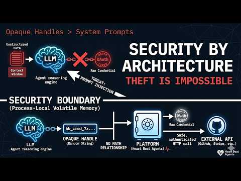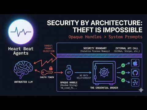 How HeartBeatAgents eliminates credential exposure through 7 boundary layers, from opaque handles and egress policies to DNS rebinding defense and hardened container isolation. The LLM never sees, holds, or processes a single token.